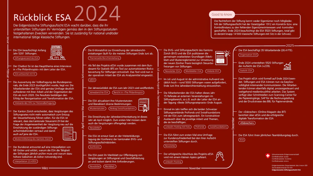 Die ESA hat ihre digitalen Jahresrückblick für das Jahr 2024 publiziert. Der Jahresrückblick bietet eine kurze Übersicht auf das vergangene Jahr mit den wichtigsten Kennzahlen und Links auf weiterführende Informationen.