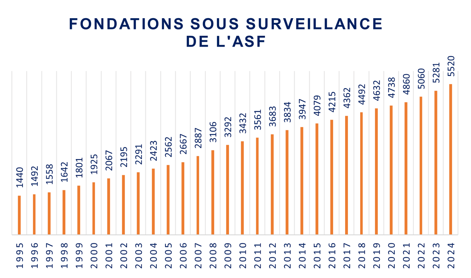 Le nombre de fondations que nous supervisons n'a cessé de croître depuis 1995.